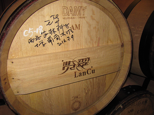 王华院长签名的橡木桶。马小明先生为队员们讲解了很多关于立兰酒庄在酿造方面的工艺知识,并为队员们解答了很多相关的问题,队员们纷纷表示受益匪浅。