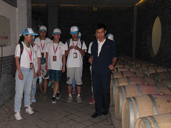 参观伊始,在酿酒师助理马小明先生的带领下,队员们参观了酒庄的生产车间和酒窖,在酒窖中还看到有国产精品