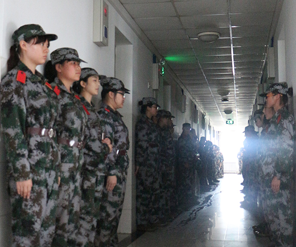 内务整理完毕后,小葡萄们整齐地、训练有素地依次站在各自寝室门口,怀揣着紧张而又激动的心情等待着教官的检查。尽管在检查过程中,教官毫不客气地指出内务的不足之处:军被摆放不够规范,毛巾没有叠成“豆腐块”状,桌面上的水渍没有擦干,地上隐藏的头发丝……但“铁汉柔情”却也名副其实,教官们在严格要求、苛刻检查的同时,也悉心教学、细心指导:为同学们重复示范被子、毛巾的叠法,亲自抚平床单上的褶皱,蹲下身来检查床下鞋子和脸盆……他们在检查内务过程中所流露出的专业、专注,无不让人受教于军人严谨认真的工作作风和人生态度。与此同时,小葡萄们也无不认真仔细地看着、听着、记录着,始终保持着谦逊、谨慎的态度。