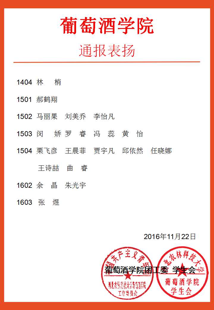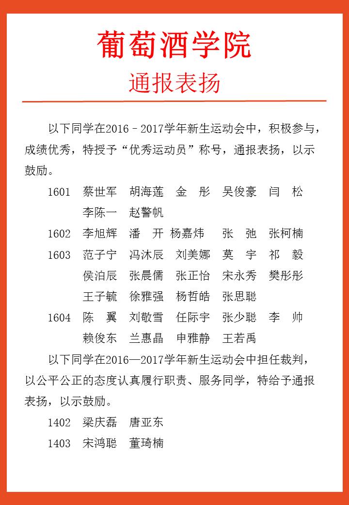 葡萄酒团(2016)42号通报表扬