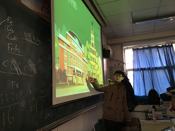 在本次活动的负责人的带领下,我们一行人来到高三班级中,从于右任先生创办我校说起,介绍我校的大楼、大师以及大爱,让同学们充分了解与感受到我校的综合实力与人文关怀。我们也向他们讲述了我校的科研成果--克隆羊、西农苹果、土豆炖牛肉等以及周尧教授、王辉教授等大师的先进事迹,同学们聚精会神地听着,时不时报以哄堂大笑。同时我们也展示了我校丰富的课余生活与美丽的校园景色,在同学们看到校园美景的一阵阵赞叹声以及收到来自西农的小纪念品地喜悦感中结束了宣讲。班级班主任亦给予我校及本次活动很高评价。
