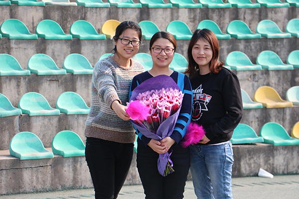 赠送的玫瑰花和节日的祝福,在暖洋洋的春日,感受运动的魅力,绽放出青春活力的笑容,每个人都快乐的像花儿一样!
