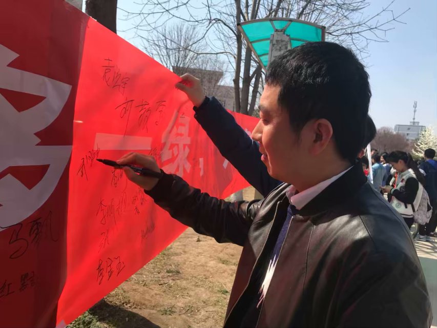 活动中同学们积极地参与活动,将名字签在横幅上,表现了葡酒学生对保护环境从我们自身做起的决心,也充分的展现了同学们对环境保护的重视。在活动中,工作人员讲解了植树节相关知识及其存在重要性,引导当代大学生树立环保意识,培养了大家的社会责任感。随着活动进行,越来越多的同学主动参与进来,和工作人员交流他们做过的保护环境的行为,并积极组织成立义务植树服务队,准备开战相关的植树服务活动。