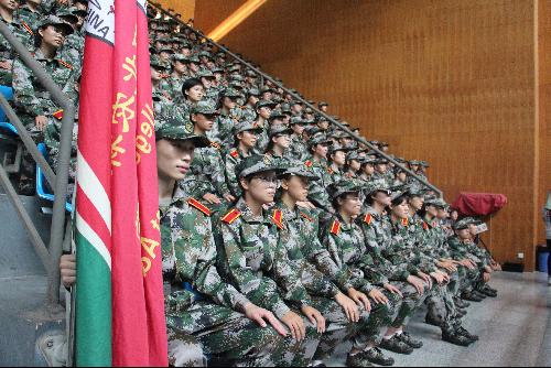 176名新生参加典礼,认真聆听校领导的讲话,积极发表感想。