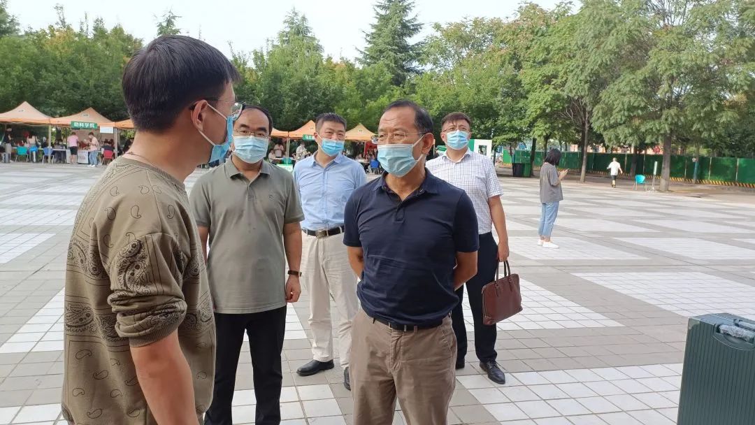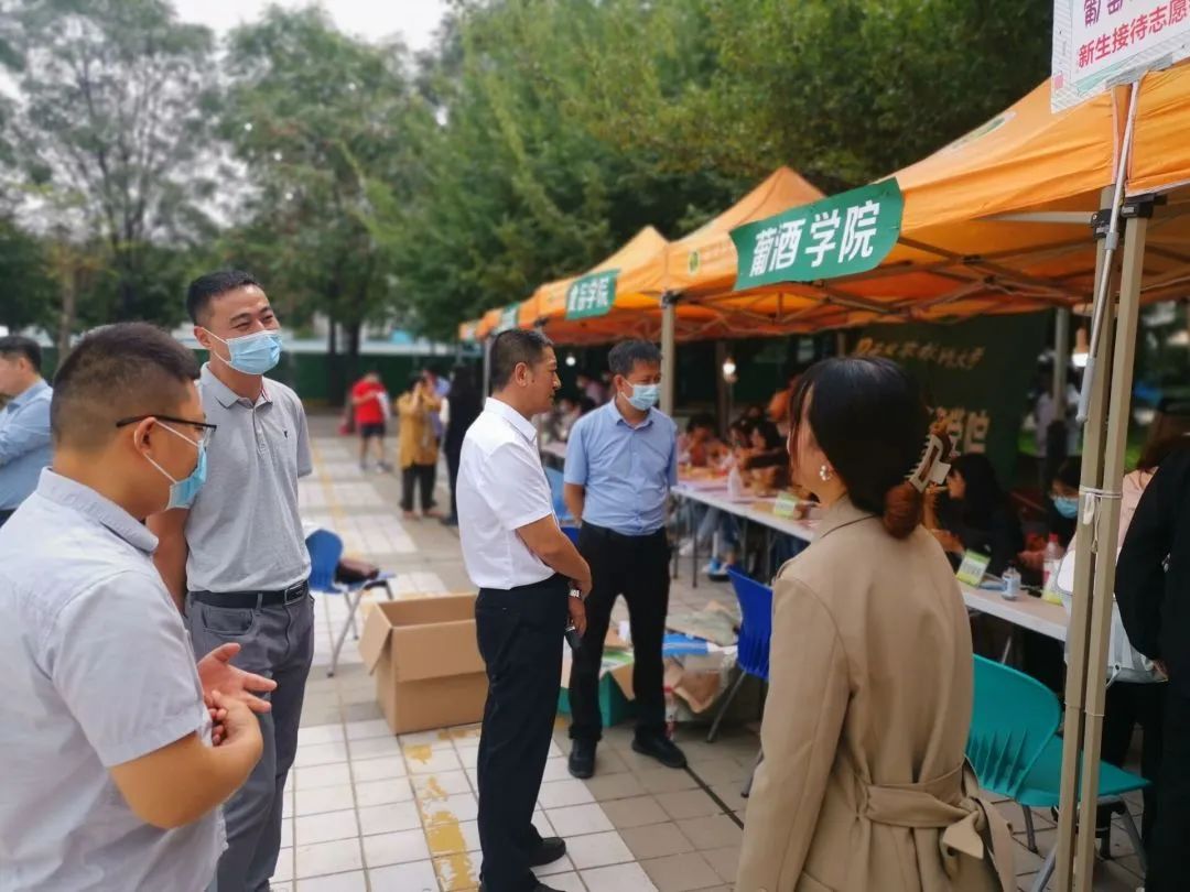 党委书记郭建东、院长刘树文、党委副书记徐三友、院长助理孙翔宇、研究生秘书梁润雅仔细了解新生报到的具体情况。领导、老师们与前来报到的研究生新生进行了亲切地交流,询问其家乡、学业规划和手续办理等情况,并对参与迎新的志愿者们的热心举动给予了充分赞赏和肯定。
