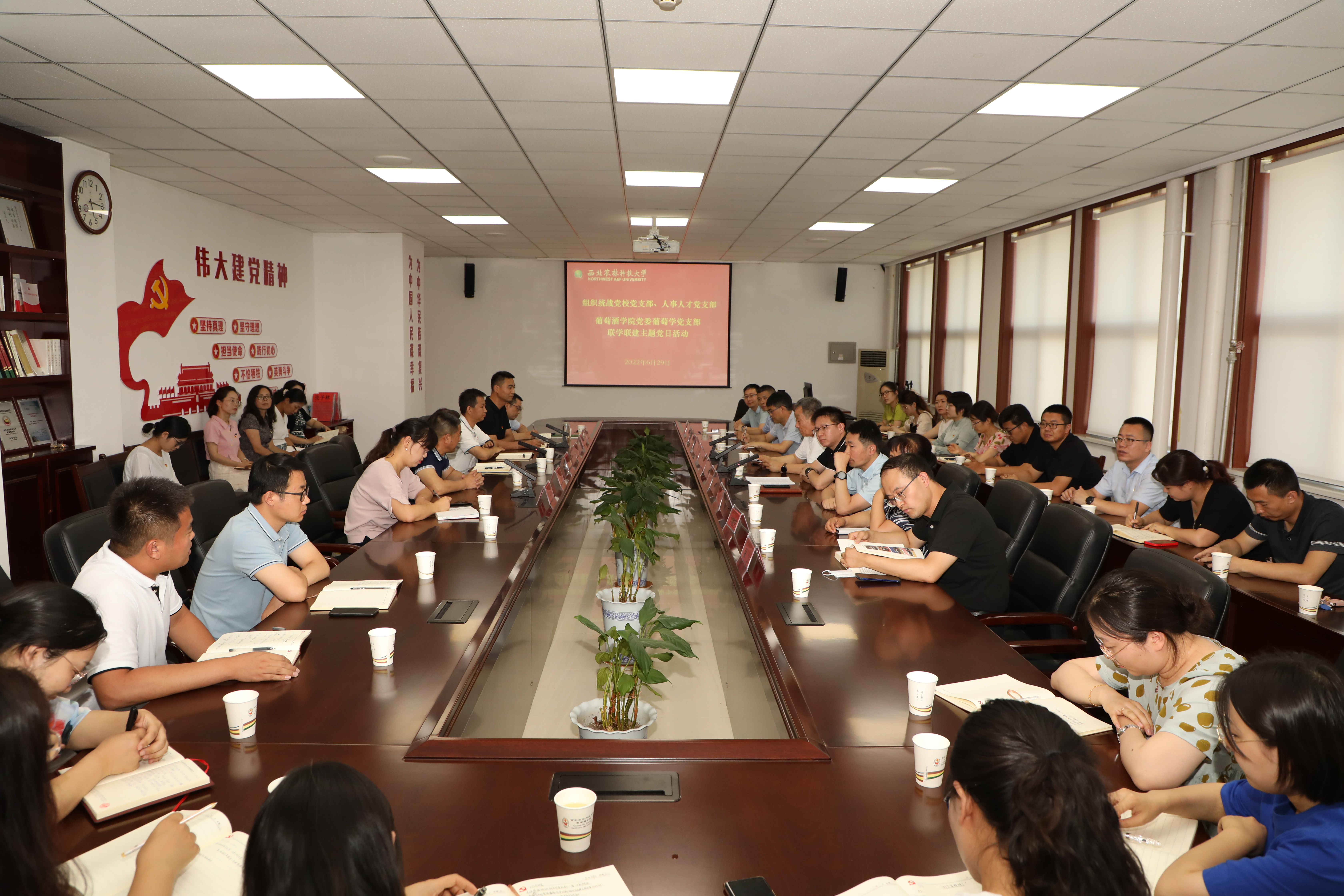 党委书记郭建东、院长刘树文、党委副书记徐三友等参加了联学联建主题党日活动。活动中,葡萄学党支部书记惠竹梅作“弘扬科学家精神,创建样板党支部”的经验分享,刘旭等与会成员分别结合自身教学、科研经历阐述了自己对传承科学家精神,以党建带动学科建设的感悟和体会。