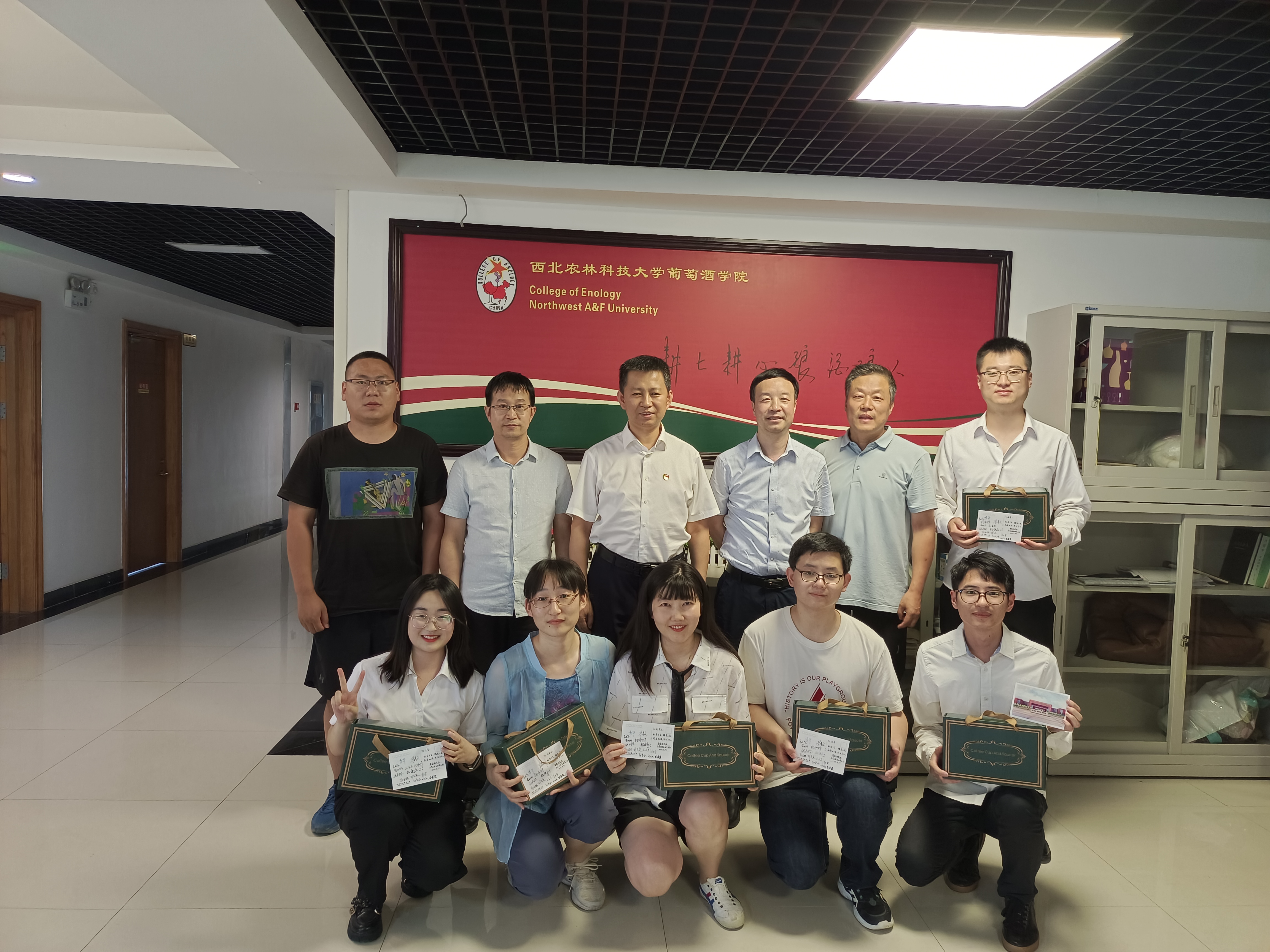 化学工程市场党支部在三楼中厅欢送毕业生党员并赠送礼物,化学工程市场党支部全体教职工及毕业生党员参加,国产精品