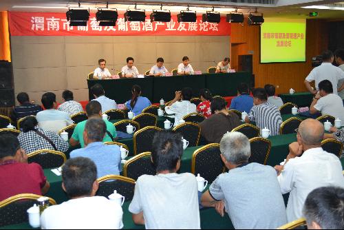 与渭南市果业局联合在渭南市成功召开“渭南市葡萄及葡萄酒产业发展论坛暨渭南市葡萄酒产业培训会”。来自渭南市果业局、科技局、扶贫办、农业局有关局长和各县市区果(农)业局局长、主管局长以及果酒、葡萄酒加工企业和种植大户等总计120余人参加此次论坛。