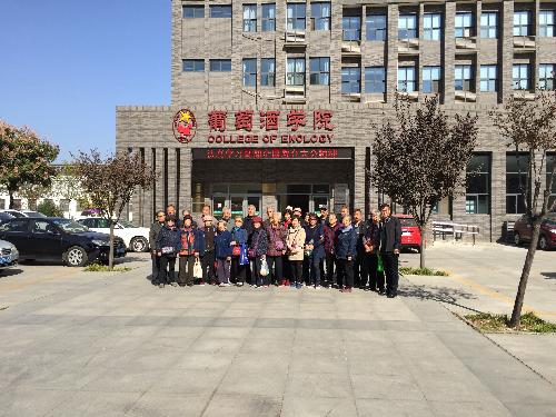 基本情况进行了介绍,并陪同大家参观了葡萄酒工艺学实验室,简单介绍了葡萄酒酿造的基本过程,建议老同志们适当喝一些葡萄酒,有助于身体健康。个别老同志饶有兴趣的与刘院长交流起了葡萄酒自酿的心得。实验室主任梁艳英老师介绍了地下酒窖的基本功能,老同志们也兴致勃勃的品鉴了国产精品