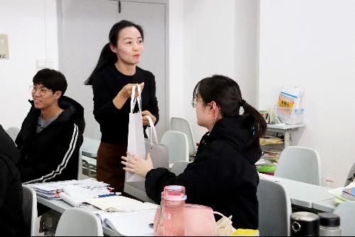 师生代表为同学们精心准备的祝福卡,也为每位考研学生送上了装有考研文具、营养品的暖心“考研助力包”,表达了全院师生对考研学生的美好祝福,祝愿同学们取得优异成绩。