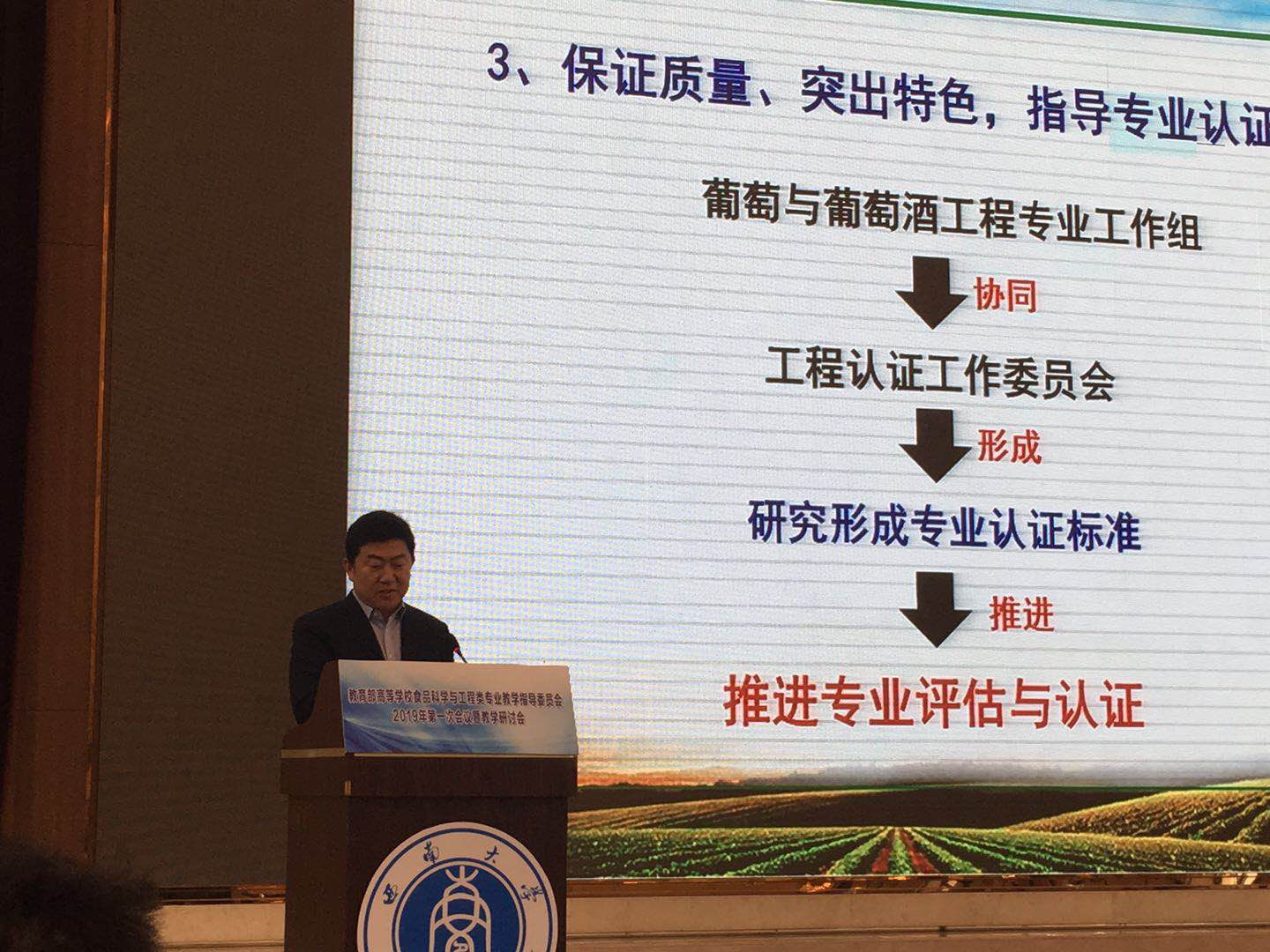 会议期间,我院参会教师就双万计划、一流专业建设、教材建设、科创竞赛计划等进行了深入的学习和交流。受食品科学与工程教指委委托,房玉林院长代表副主任委员李华教授作了报告,汇报了“葡萄与葡萄酒工程/酿酒工程”专业工作组未来5年的工作方案;并针对葡萄与葡萄酒工程专业评估、认证工作的意向及思路向教指委进行了汇报与沟通。
