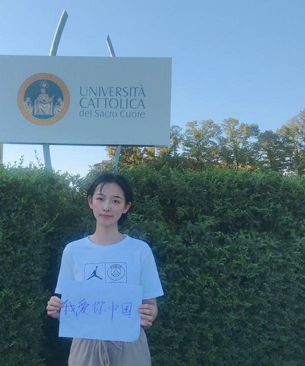 远在意大利访学的学生刘迪也通过观看网络直播表达对祖国的热恋和思念,她谈到:远游海外更思祖国月光,在意大利卡托利卡大学访学的生活是充实忙碌的,但更令我们海外游子自豪的是,在与中国相隔万里以外的欧洲大陆,我的祖国正被更多来自不同国家和地区的人们尊重,更多的人看到中国如今的繁荣昌盛,从世界时尚之都米兰著名文艺复兴百货商店随处可见的用中文书写庆祝祖国70周年庆的支付宝折扣海报,到地铁上、火车站的可选择的中文购票语言,再到街边随处可见的华为手机店,再到同学、邻居,提起中国和意大利的一带一路合作时,对中国竖起的大拇指。其实祖国一直都在每一位海外学子的身边,正值新中国成立70周年,作为海外游子的我,必将怀抱着这份民族自豪感,时时刻刻为祖国荣誉而战,努力学习,为祖国的繁荣昌盛增添属于自己的力量。