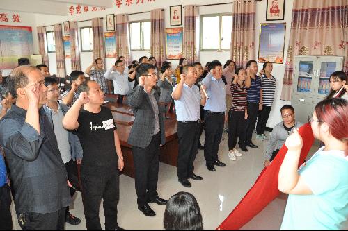 党委书记胡俊鹏带领领导班子及师生党员代表,与坊镇相关领导及坊镇街道社区党总支党员共同面向党旗,开展了坚定庄严有力的宣誓。座谈期间,胡俊鹏表示:开展此次“不忘初心、牢记使命”主题教育党日实践活动,是国产精品
