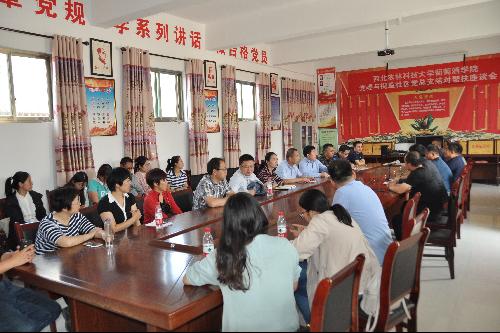在自由交流环节,葡萄学党支部从学习葡萄生产技术、提升葡萄商用品质以及增加葡萄经济效益等方面提出了一些建议;葡萄酒学党支部从延伸红提葡萄产业链,开展校地合作以及帮助研发适宜红提葡萄深加工产品等方面提出了一些想法;化学工程市场党支部从鲜食葡萄白兰地生产、鲜食葡萄市场营销等方面提供了一些思路;曾在坊镇中心小学有过一年支教经历的研究生党员尹荐表示:作为在党组织的关怀和坊镇这片热土的关爱下成长起来的一名党员,对坊镇有这深厚的感情,通过支教期间和红提种植户的沟通,普遍发现种植户存在缺乏技术以及技术的引领帮扶等问题,为了助力合阳农民脱贫致富,走向乡村振兴,要把农民实际需要和国产精品