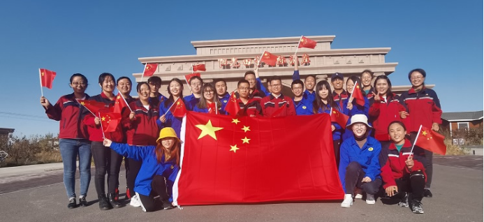 上午十点半,在酒庄黄建清总经理的精心安排下,同学们与酒庄员工一同观看了电影《我和我的祖国》。尽管不少同学一年前已观影过,但当大家再次观看这部电影时,不禁肃然起敬,自豪感油然而生,激动的心情溢于言表。队长李正宇同学谈到:“当‘我和我的祖国,一刻也不能分割’歌声响起,热泪夺眶而出。让我感动的不只是故事里中华民族的艰难而坚毅的复兴路,更让我联想到新冠疫情期间,党和国家不惜一切代价保卫人民生命安全的决绝和雷厉风行,最美逆行者们奋战在抗疫前线的担当和铿锵坚守。”观影结束后,“我与国旗合个影”将国庆庆祝活动推向了高潮。